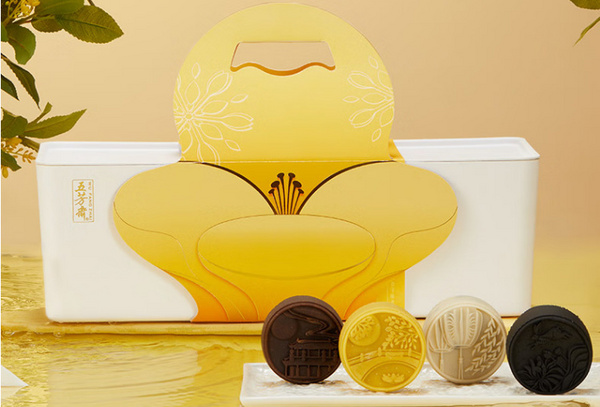 五芳轻月低糖糯月饼礼盒包含元气五谷低糖糯月饼、秋耳黑米低糖糯月饼、黑芝麻核桃低糖糯月饼、芋泥奇亚籽低糖糯月饼四种味道各2枚,表皮松软细腻,入口绵密,含糖量≤5g/100g,软糯轻甜无“腹”担。采用绿色环保包装,由竹浆+甘蔗渣制作而成,可在土壤中降解。